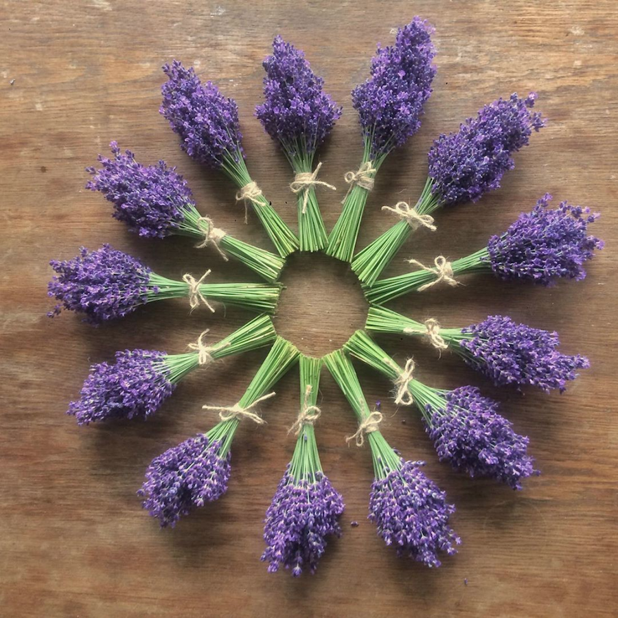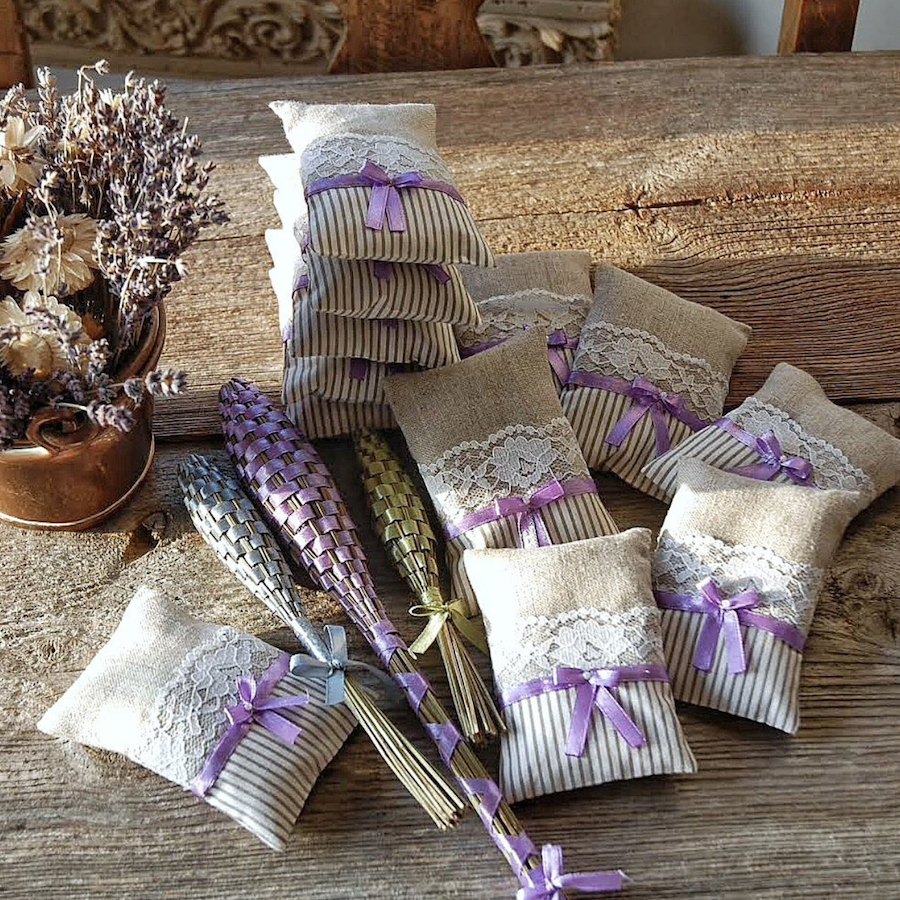 Gdy w moim ogrodzie jest czas królowania lawendy całe dnie zaplatam wrzeciona, szyję poduszeczki i plotę wianki które są wspaniałą i aromatyczną ozdobą na drzwi lub na ścianę.